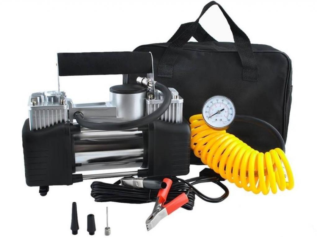 DANE TECHNICZNE: - Zasilanie 12-12,5V - Pobór prądu 18-22A - Max ciśnienie 150-200PSI - 2 żabki do podłączenia - Wąż ciśnieniowy - Moc 250W - Czas pracy < 20min - Wydajność 85 L/Min. - Dodatkowe 3 końcówki do pompowania np. piłek, materacy itp