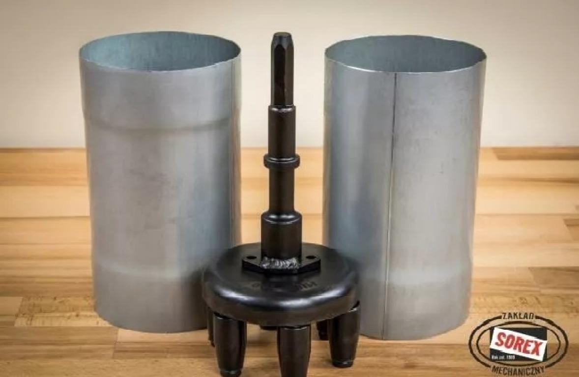 Mufownica SOREX TECHNIC jest niezbędnym urządzeniem przy pracy każdego blacharza zajmującego wytwarzaniem rur spustowych i muf. Niezbędne narzędzie przy powiększaniu średnicy rynien i rur spustowych. Służy do rozpęczania końcówki rury na większą tak aby można było estetycznie i bez trudu połączyć rury spustowe z mufą.