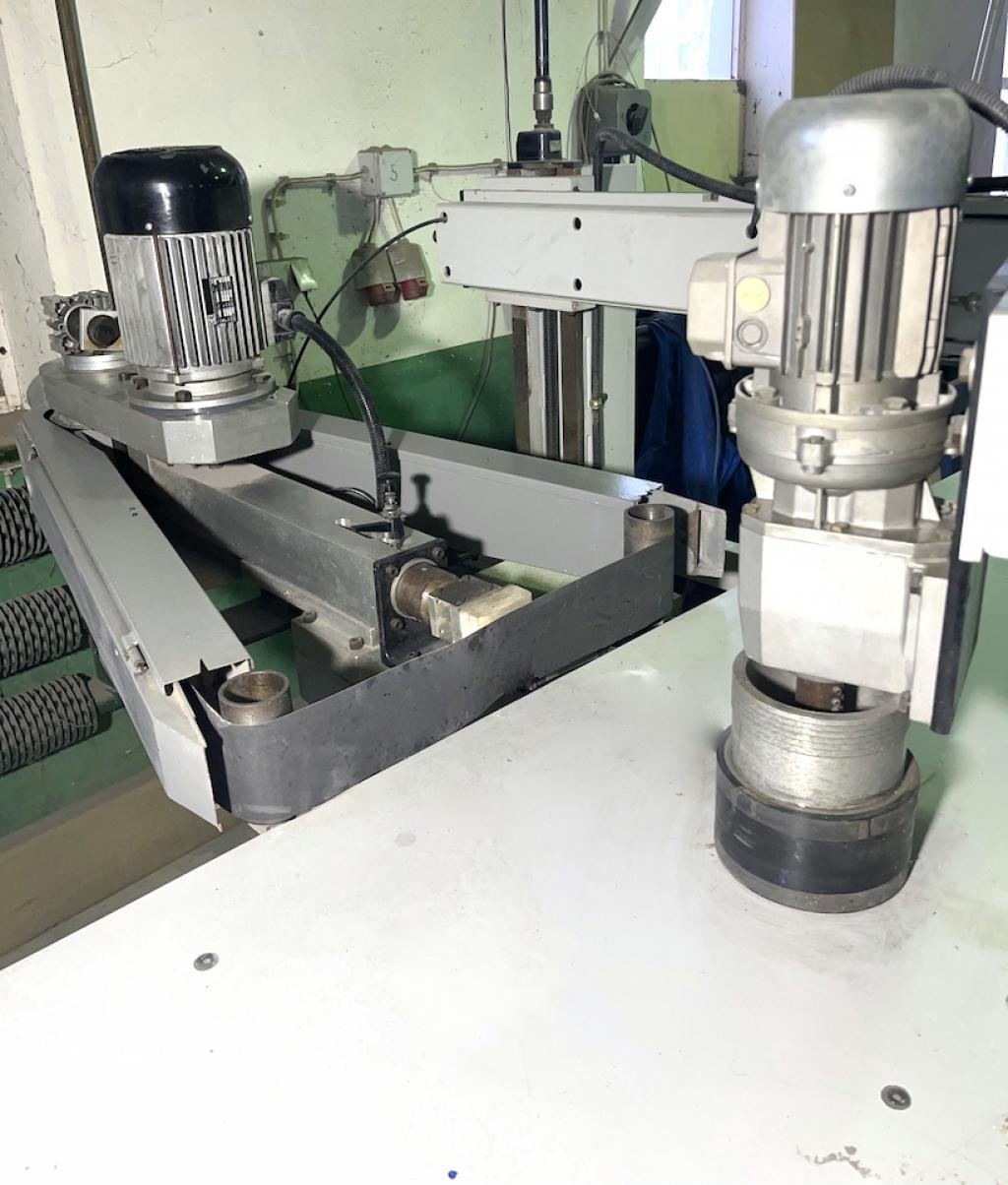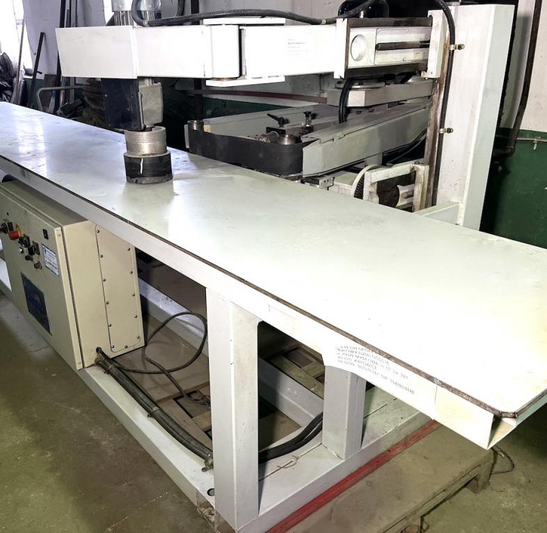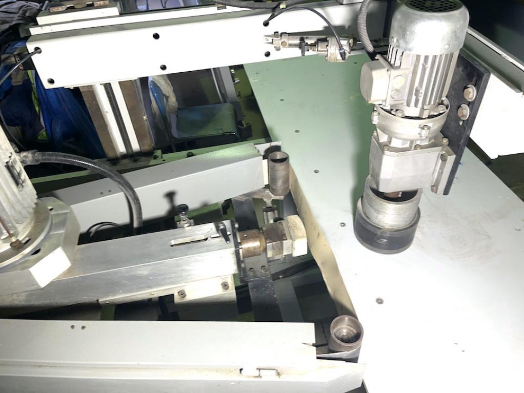 do szlifowania kantów elementy prosto i krzywo liniowe agregat ruchomy 180 stopni typ SC N1 agregat szlifujący taśma bez krańcowa szerokość taśmy szlifującej max 120 mm regulacja prędkości taśmy szlifujacej (falownik) obroty prawo lewo oscylacja mechaniczna możliwość ustawienia pod kontem góra dół przód tył napinanie taśmy szlifującej pneumatycznie posuw regulowany płynnie (falownik) docisk agregatu posuwowego pneumatyczny regulacja siły docisku rok produkcji 1997 znak CE