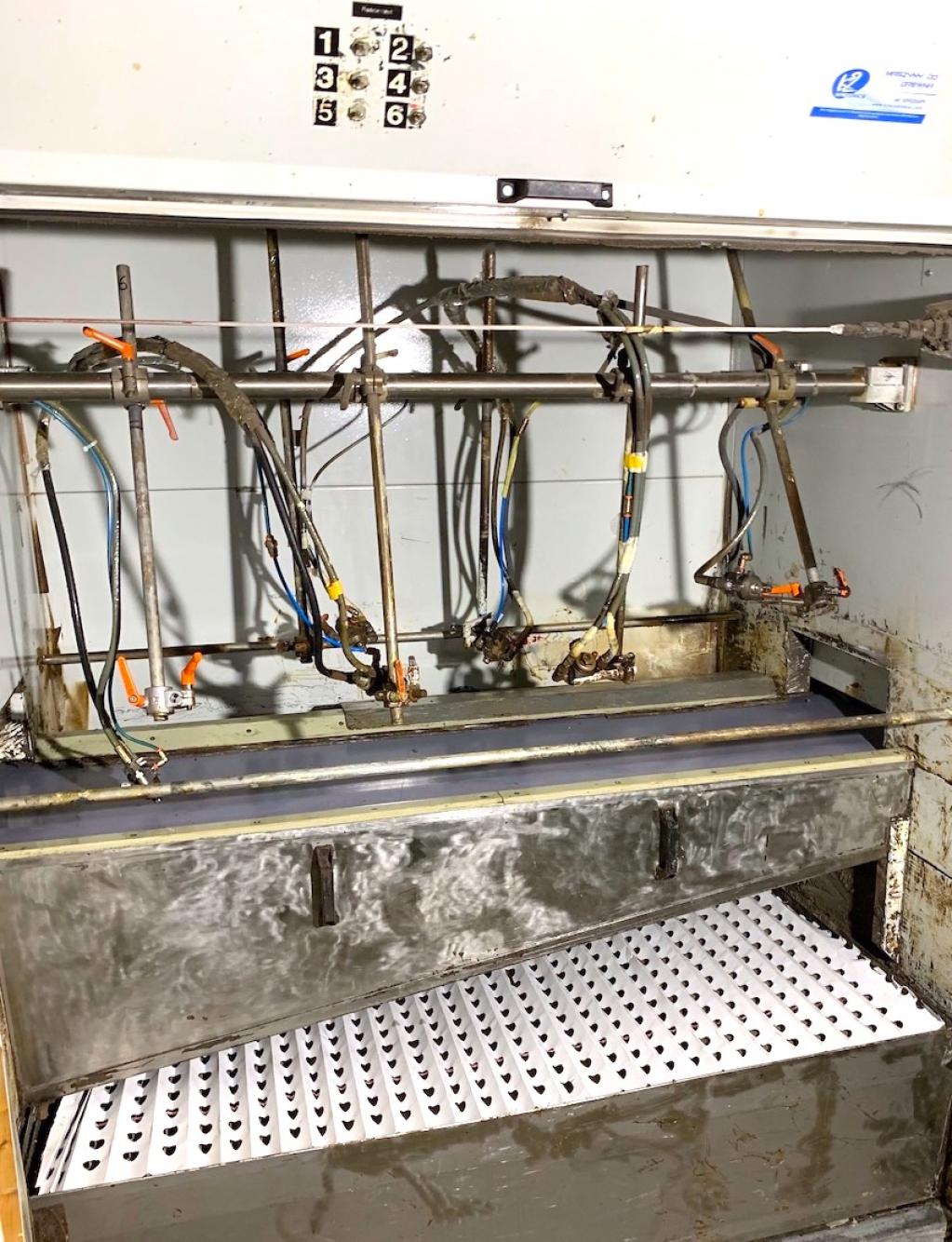 Ilość pistoletów lakierniczych 8 Pistolety KREMLIN 6 pistoletów w środku 2 pistolety na zewnątrz poza taśmą tansportową ustawione od dołu