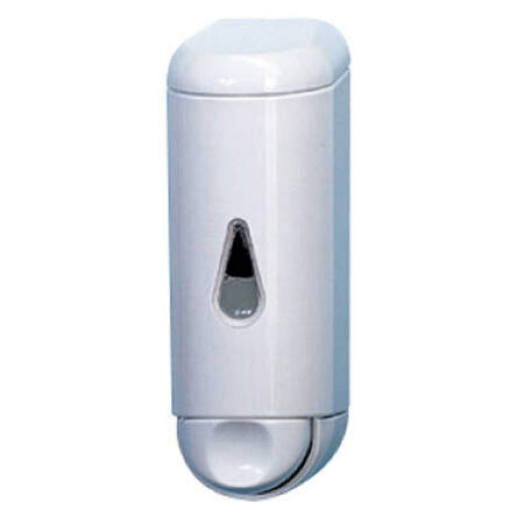 Dozownik do mydła w płynie o pojemności 170 ml. Uruchamiany przy pomocy przycisku, wyposażony w okienko kontrolne umożliwiające monitorowanie ilości mydła wewnątrz podajnika. Optymalne rozwiązanie dla toalety o niewielkim natężeniu ruchu.