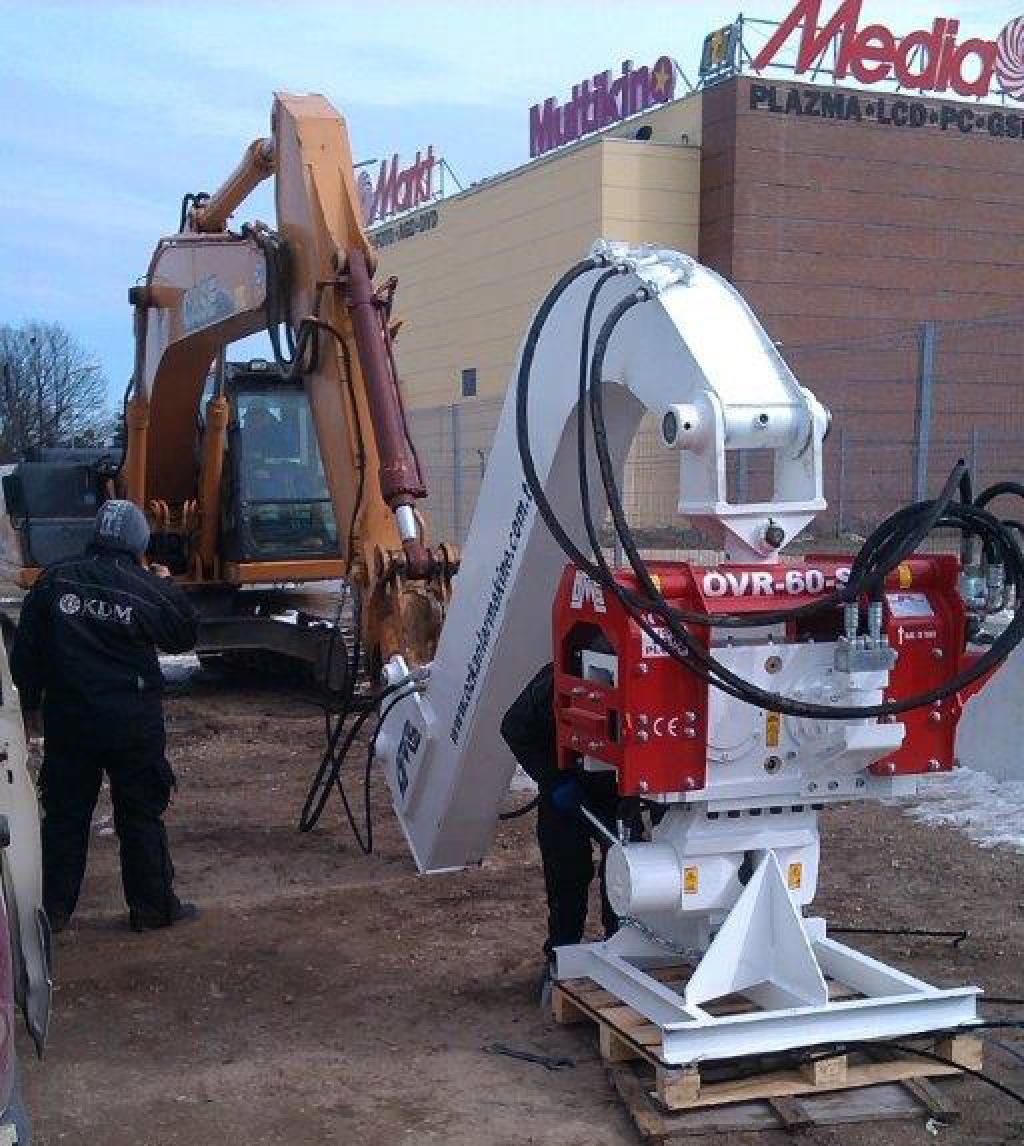Montowany na wysięgniku koparki oraz zasilany z hydrauliki koparki.
