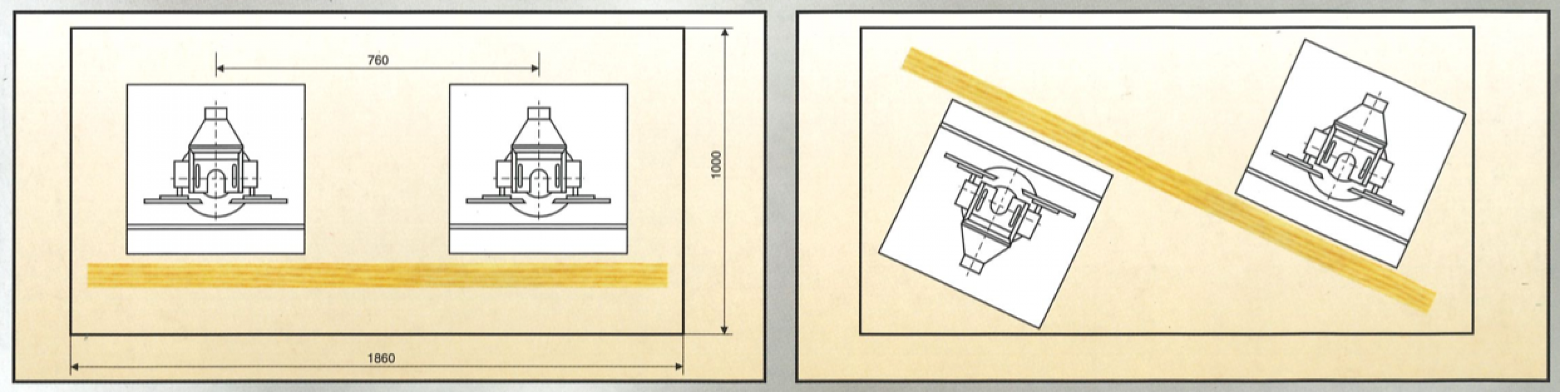 Wrzeciona mogą być ustawione w lini lub na przeciw siebie
