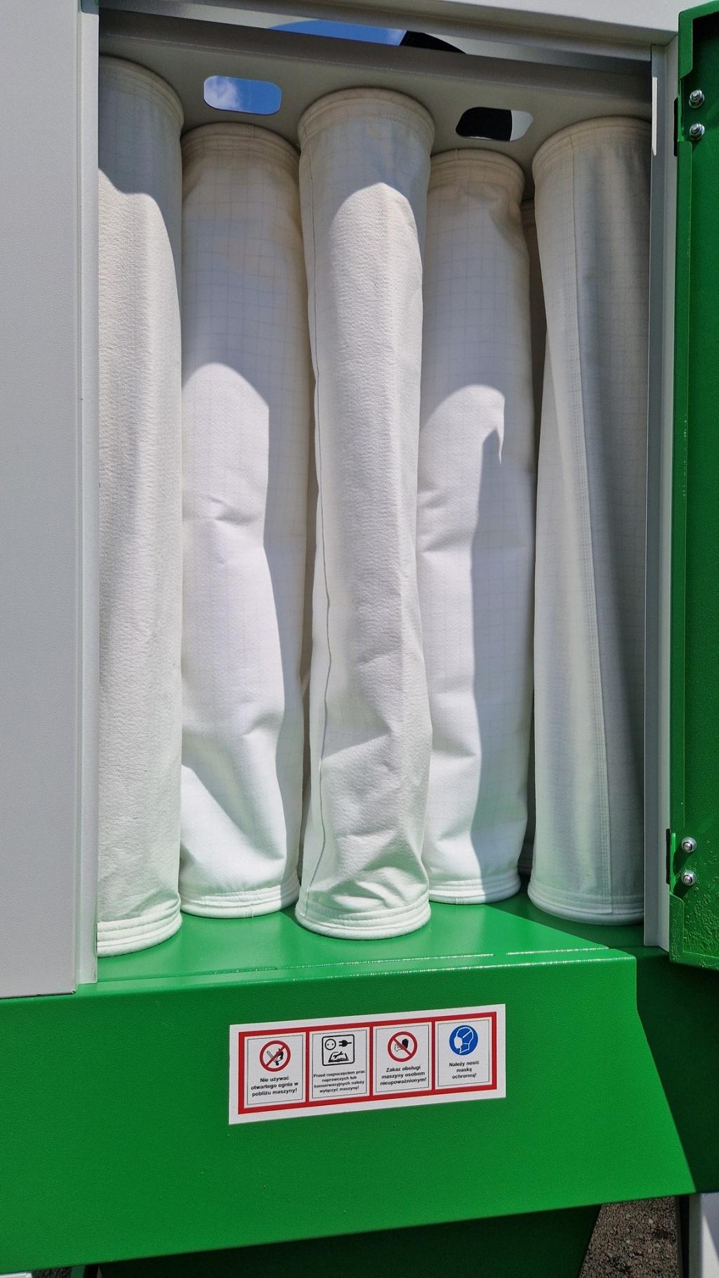 • System automatycznego wibracyjnego czyszczenia tkaniny filtracyjnej – w czasie przerwy oraz w trakcie pracy filtra pozwala na stałe monitorowanie poprawności pracy.