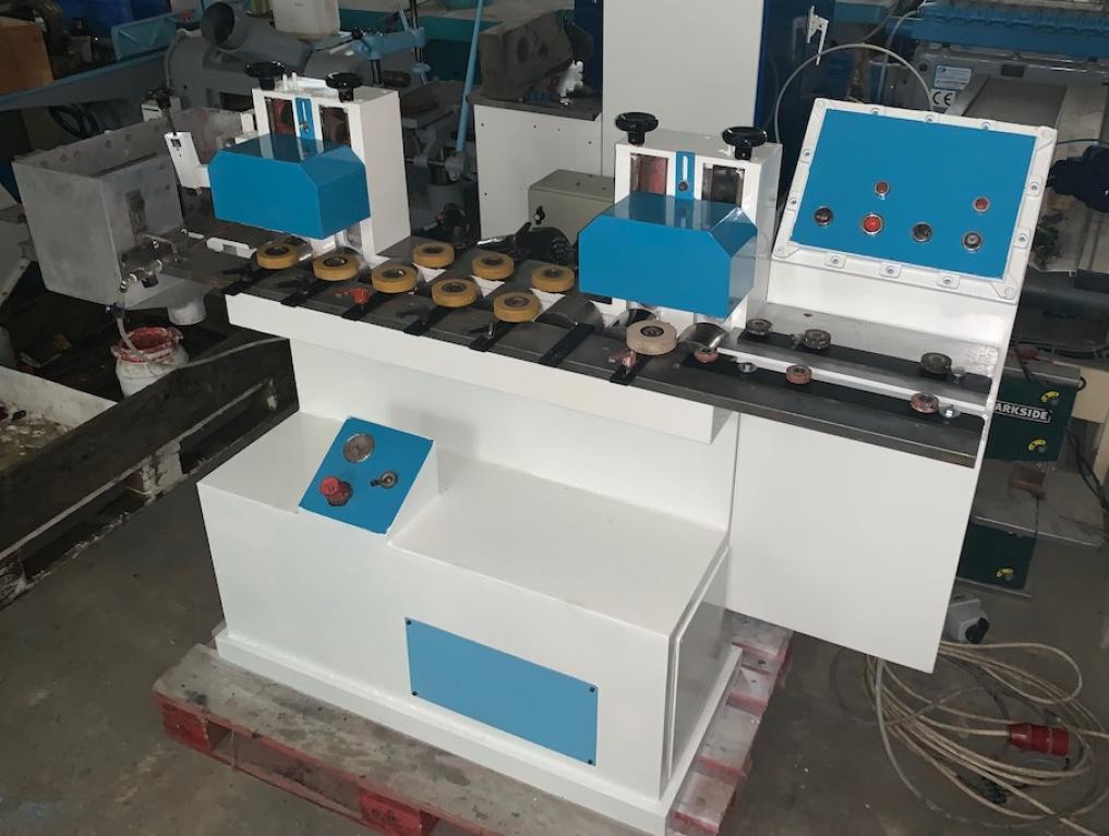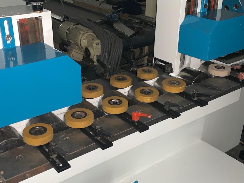 Rolki górne x 4 Rolki dolne z posuwem x 8 Prowadnice mają możliwość szybkiego ustawienia bez użycia dodatkowych kluczy. Zmienna prędkość maszyny : od 20 do 85 m/min.