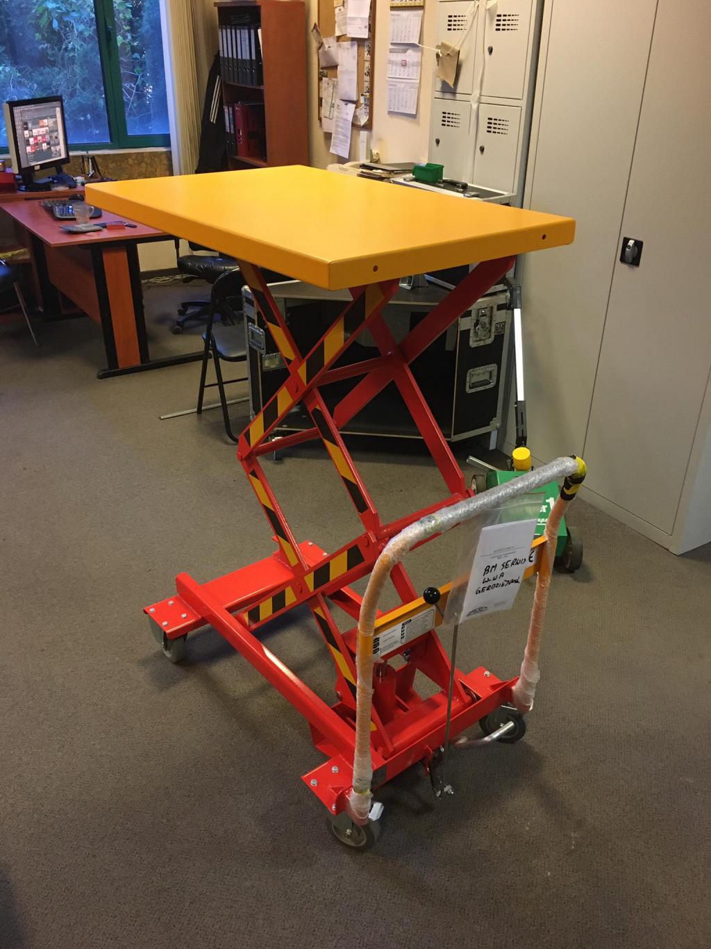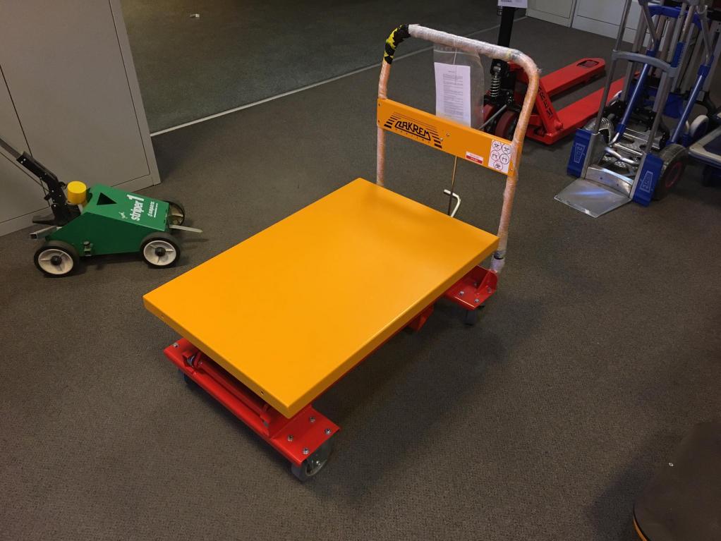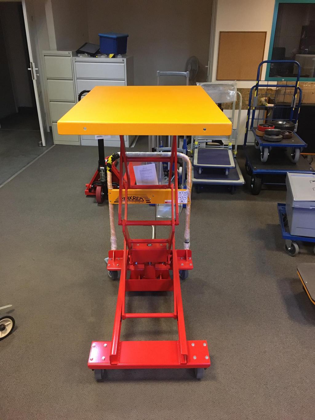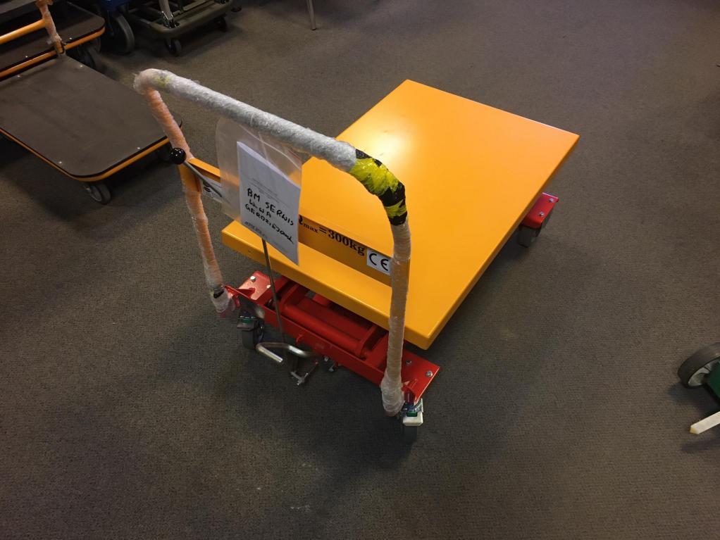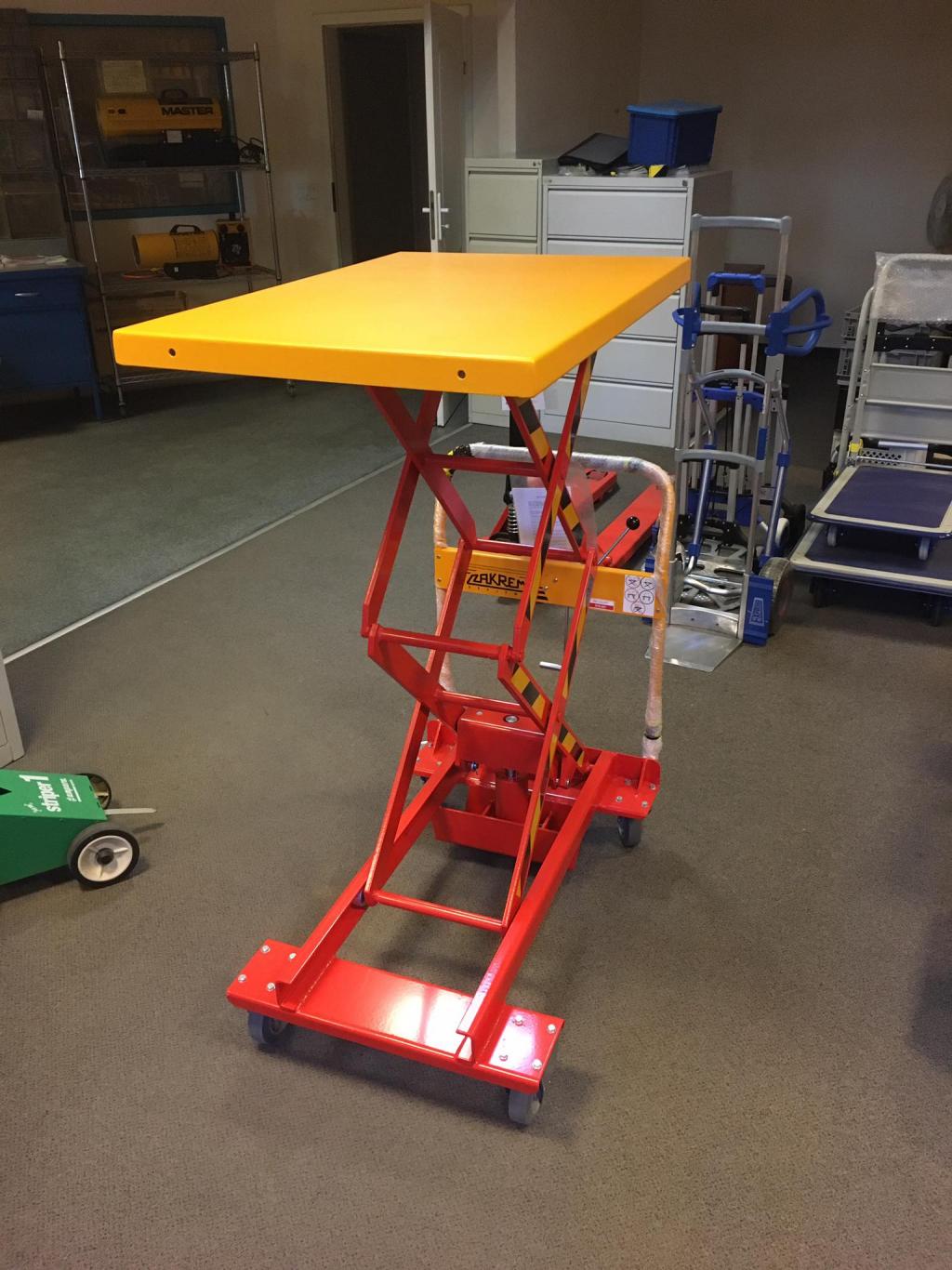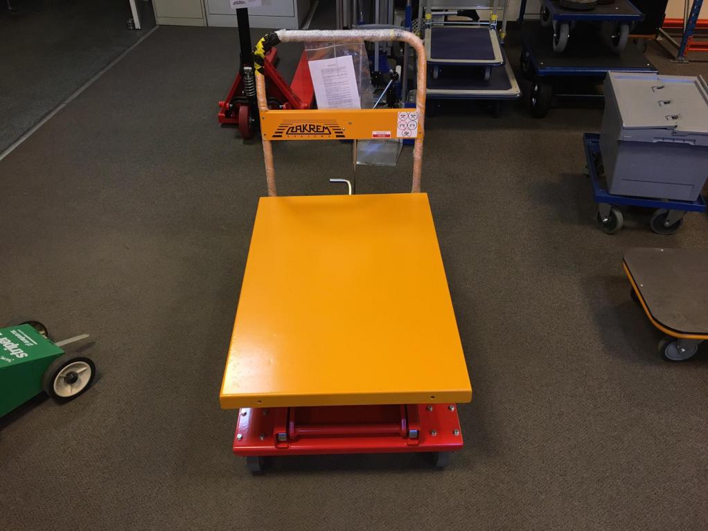 oferujemy nowy wózek podnośnikowy z platformą podnoszoną hydraulicznie poprzez pompę nożną. Wózek jest polskiej produkcji.