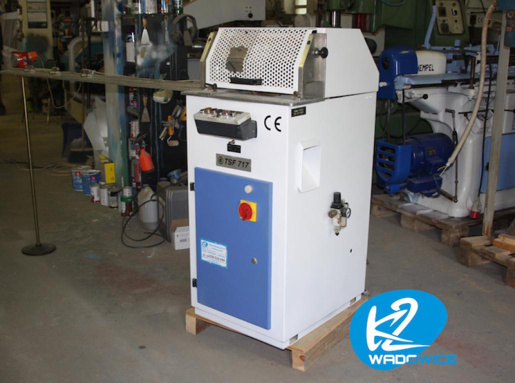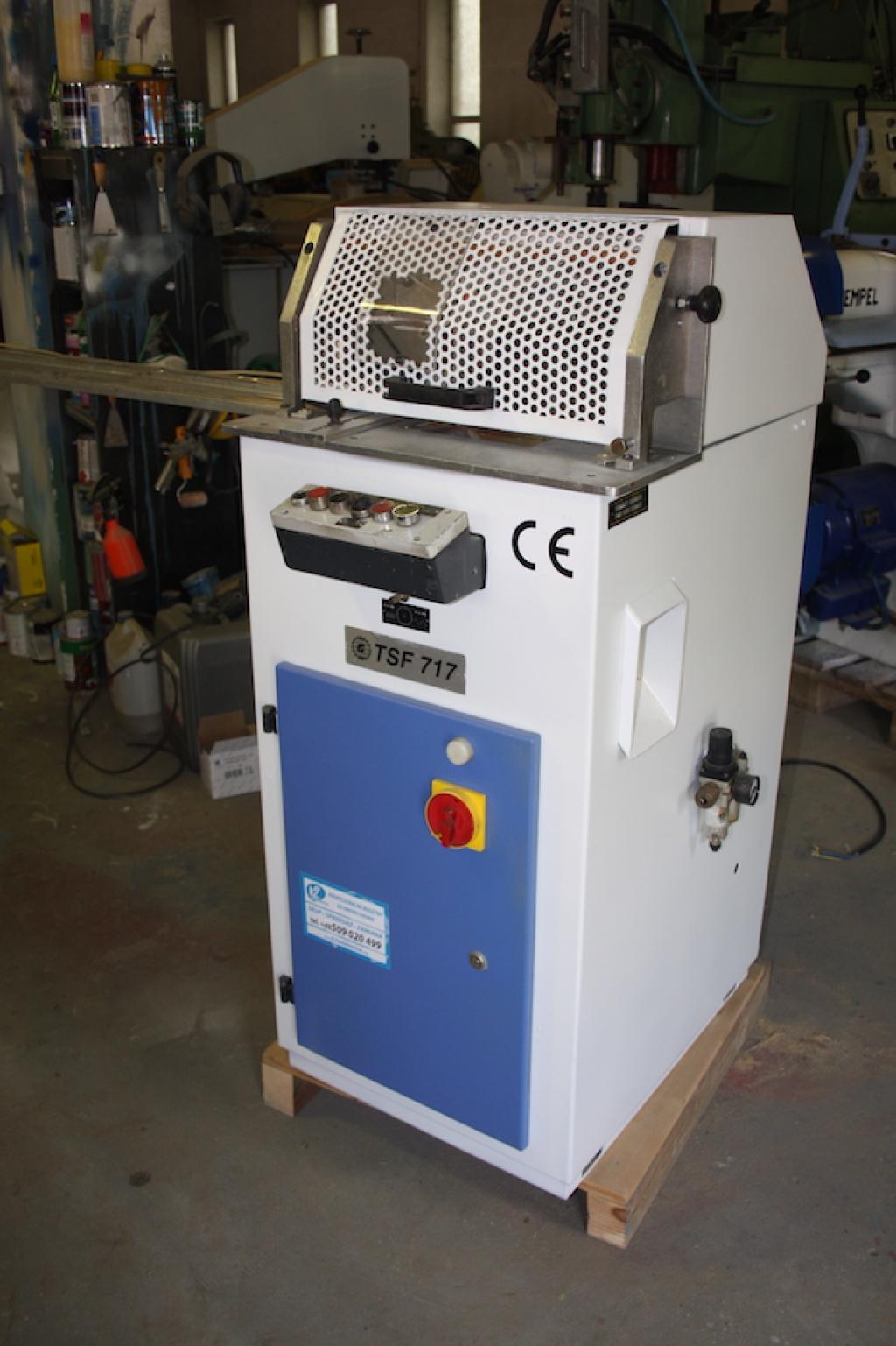 Typ TSF 717 max średnica piły 300 mm cięcie pod kątem 45° max. szerokość robocza 80 mm docisk pneumatyczny posuw piły pneumatyczny regulacja prędkości posuwu stolik boczny długość 2000 mm przymiar elektroniczny czujnik - przymiar znak CE