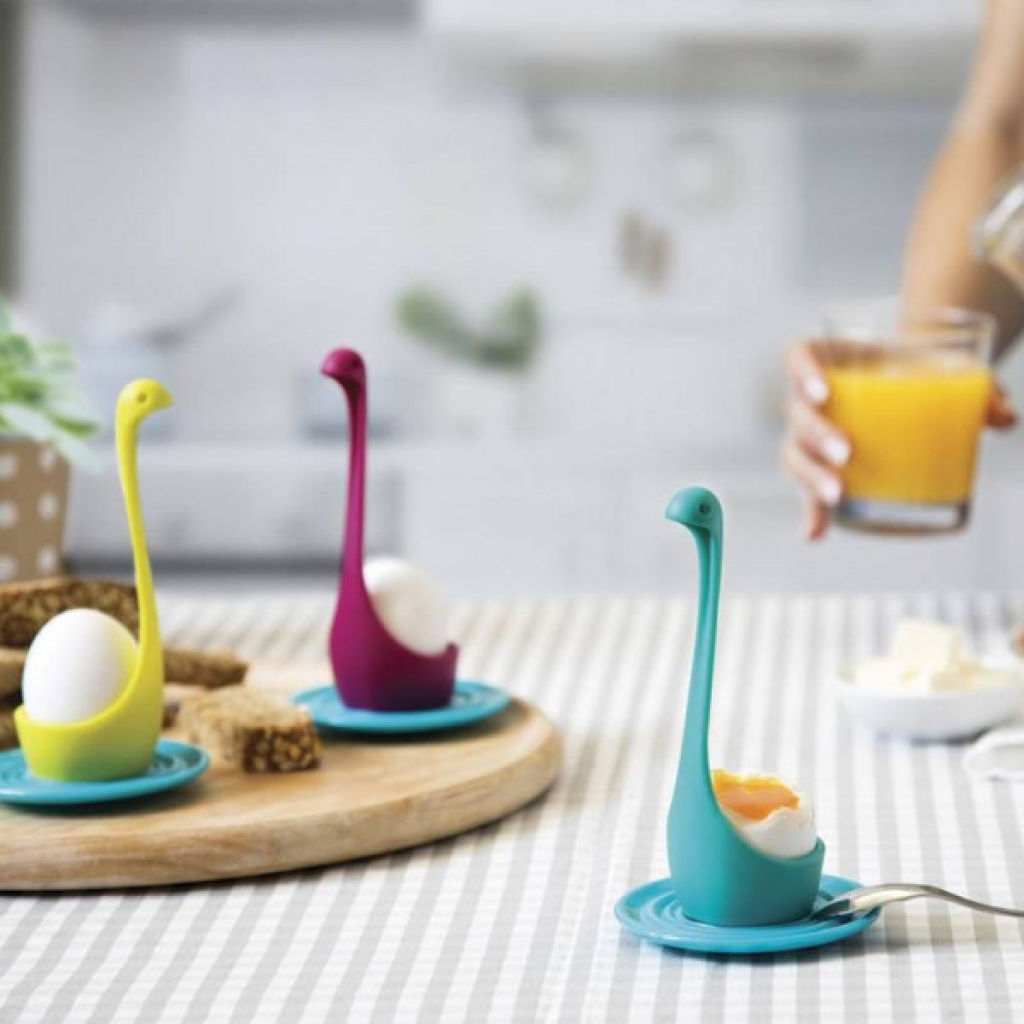 Gadżet przybył prosto z głębin największego szkockiego jeziora, by towarzyszyć Ci podczas pysznego, sycącego śniadania. Miss Nessie - potworna podstawka do jajek zapewni wygodę i porządek podczas najważniejszego posiłku w ciągu dnia. Wygląda jakby unosiła się na wodzie dzięki dołączonemu spodeczkowi, który zapewni czystość kuchennego stołu. Dla naszego małego potworka żadne jajko nie jest wyzwaniem! Bez względu na to, czy jesteś wielbicielem tych na twardo, czy na miękko, Nessie sprosta Twoim oczekiwaniom. Ta strasznie urokliwa podstawka musi zagościć w Twojej kuchni!