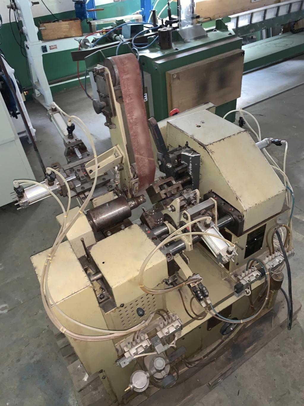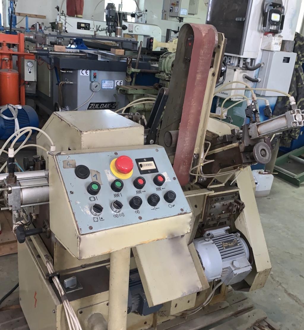 Producent VEB VERO Typ DS Długość robocza 200 mm Średnica 80 mm Kopiowanie za pomocą noży profilowych Ilość agregatw z nożami x 2 Dojazd pneumatyczny Agregaty umiejscowione na przeciw siebie Taśma szlifująca bez krańcowa Szerokość 120 mm Taśma obraca sie powoli w przeciwnym kierunku jak element toczony Oscyluje